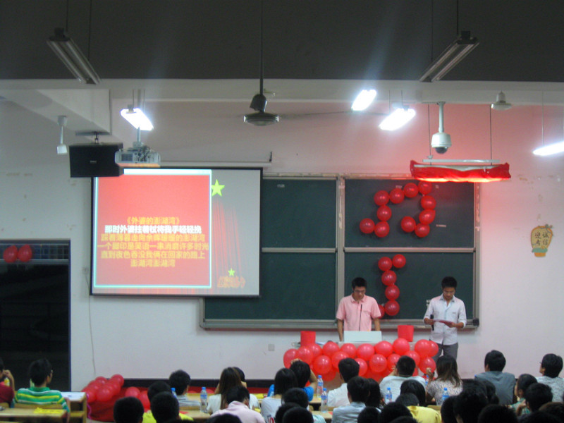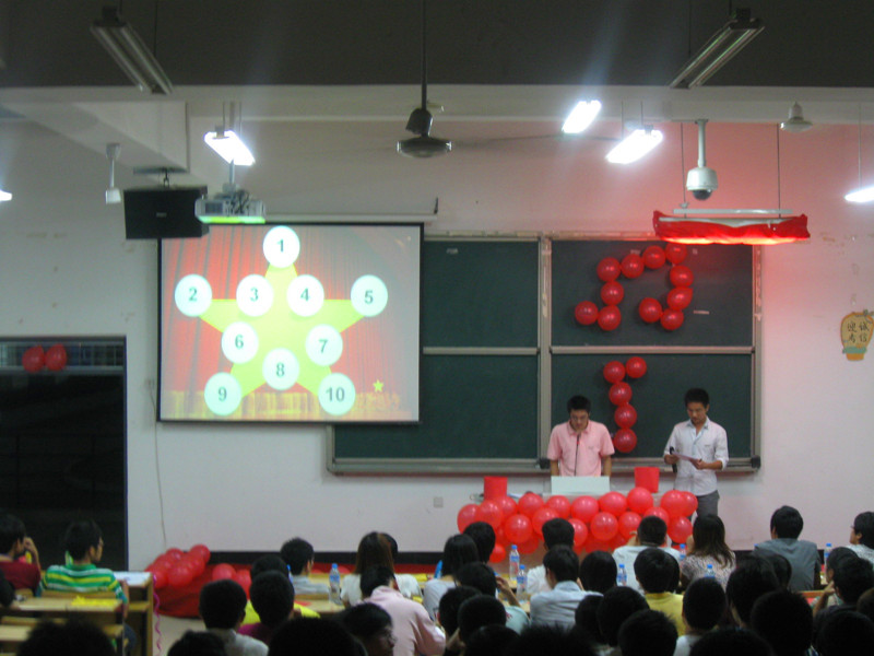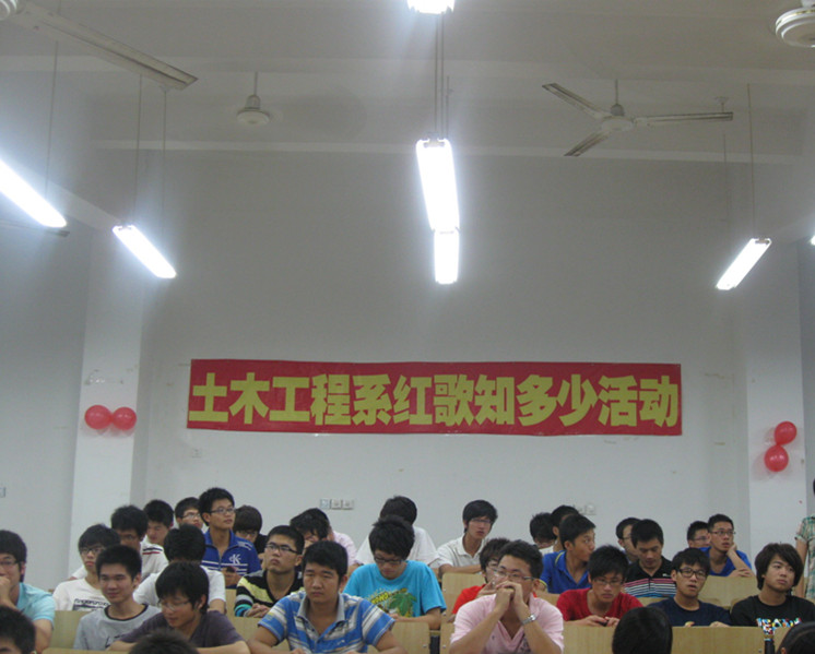 5月29日晚,土木系庆祝建党90周年系列活动之“红歌知多少”大赛在北区大教西一举行。出席此次比赛的嘉宾有系10级辅导员范五三和各年级优秀干部,10级班长团支书、入党积极分子及广大同学前来观赛。