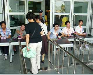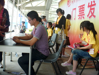 志愿者们每天早上6:30坐专车赶到会馆,进行前期准备工作。上午9点时会展中心的场馆正式开放,他们开始为游客发放门票,并配合保安维持现场秩序。在中午匆匆吃完午饭后他们又继续忙碌起来,直到下午4点才结束一天的工作。此次海交会的规模盛大,前来参观的游客非常多,现场人山人海,给门票发放工作带来了不小的挑战。志愿者们迎难而上,顶着烈日,耐心地为游客们发放门票。尽管工作量大,工作时间长,但是志愿者们毫无怨言,吃苦耐劳,以最积极的态度投入到志愿服务中,受到了海交会组委的一致好评。