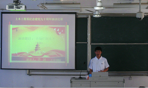 土木工程系纪念建党九十周年演讲比赛在北教4#205隆重举办。法学系马列部老师雷辉 、土木工程系团委书记邱铁辉、土木工程系辅导员范五三受邀担任此次比赛的嘉宾,土木工程系团委学生会主席团担任此次比赛的评委。 比赛伊始,在主持人巧妙说辞的牵引下,19位参赛选手各展风采,以真挚的情感、澎湃的热情、创新的理念、铭心的经验、融入到语言中,无不给在场人员一次深刻的敬党情感说教。最终,许剑以《在灿烂阳光下》摘得本次大赛的桂冠,冯媛媛《回首.感恩.信念》以及陈琳《90年,我们不会忘记》获得二等奖,徐英特 周珊珊 卢兵 获得三等奖。在颁奖典礼过后,来自法学系马列部的雷辉老师做精彩的点评。纪念建党九十周年演讲比赛早全场热烈掌声中画上完美句号。