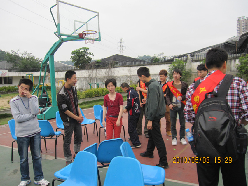 志愿者们从一开始就表现出了极大的热情,他们分工合作,在各个班级开展不同的游戏活动,与启能中心的学员们“打成一片”,玩的不亦乐乎。志愿者们准备了很多的游戏活动,有的与启能中心的学员们坐在一起玩抢椅子的游戏,有的在篮球场上打着球,还有的和学员们一起歌唱。在玩游戏的同时,同学们也与启能中心的学员们进行沟通,了解他们的生活情况。志愿者在临走之前,还将他们从超市买来的零食分发给启能中心的学员。活动结束后,志愿者们还和启能中心的学生一起拍照留念。