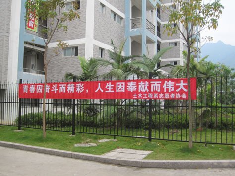 为了弘扬“我为人人”的无私奉献精神,鼓舞更多的人加入志愿者这一行列之中,土木系青年志愿者在A区等地进行了宣传活动。志愿者在A区学生宿舍楼下拉了以“青春因奋斗而精彩,人生因奉献而伟大”为主题的条幅,及口头宣传等形式进行了深刻的宣传活动。