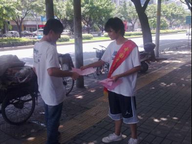 在社区书记的指导和带领下,志愿者开展社区文明宣传、交通劝导以及在社区范围内的文明宣传活动。主要是制止责任区域内行人乱穿马路、乱丢纸屑、乱停乱放、乱摆摊点、占道经营等不文明行为并宣传创文明新风。
