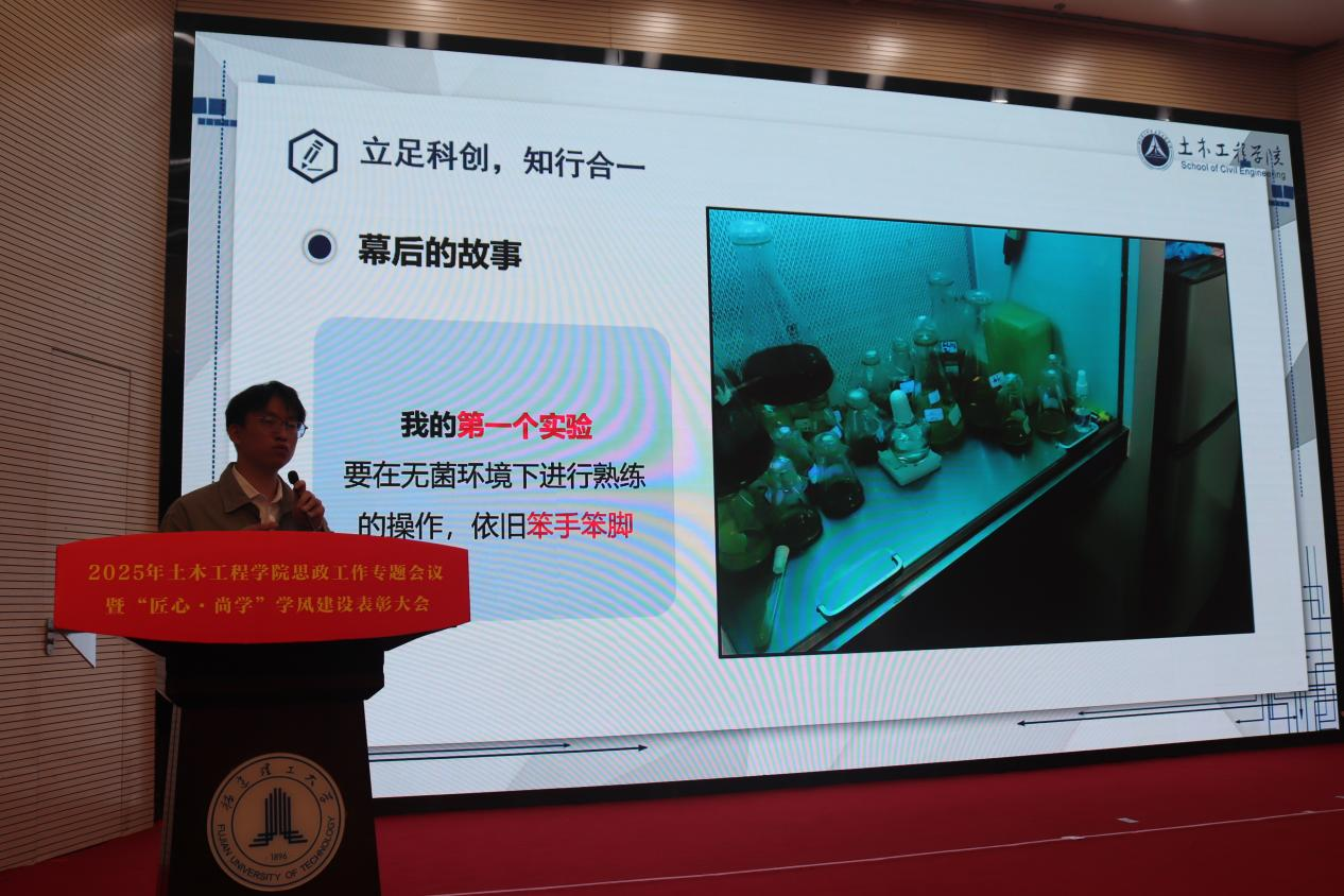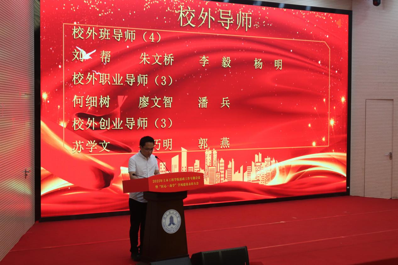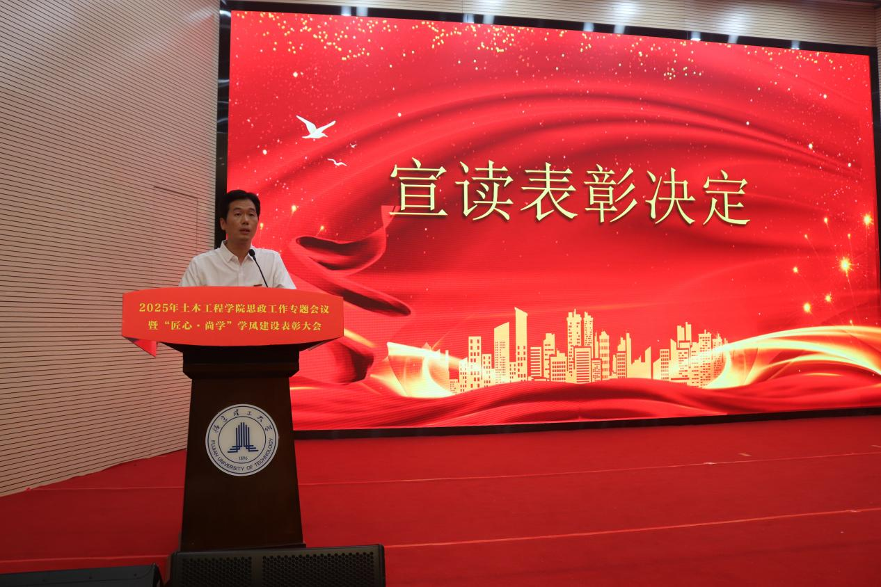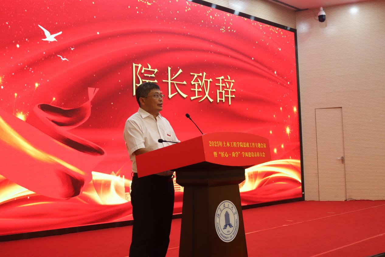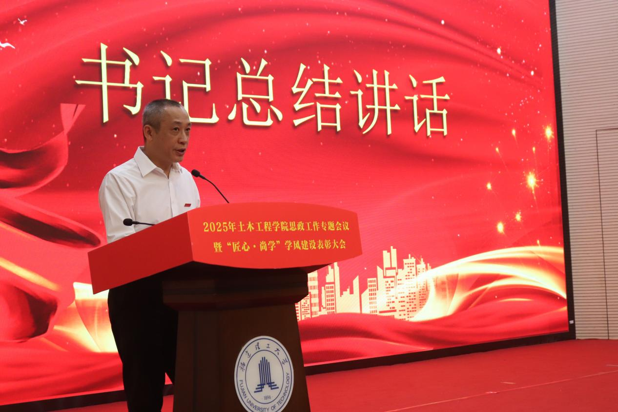 黄志铭在大会总结讲话中强调,本次大会既是对过往育人成果的总结,更是对“匠心·尚学”精神的传承与发扬。他要求全院师生以党建为引领,筑牢思政育人根基,以学风建设为抓手,推动人才培养质量再提升。讲话立足学院发展实际,为未来发展指明方向。此次活动不仅是对先进典型的表彰,更是一场凝聚共识、催人奋进的动员大会,激励着土木人在新征程中以实干践行使命,以创新铸就辉煌。