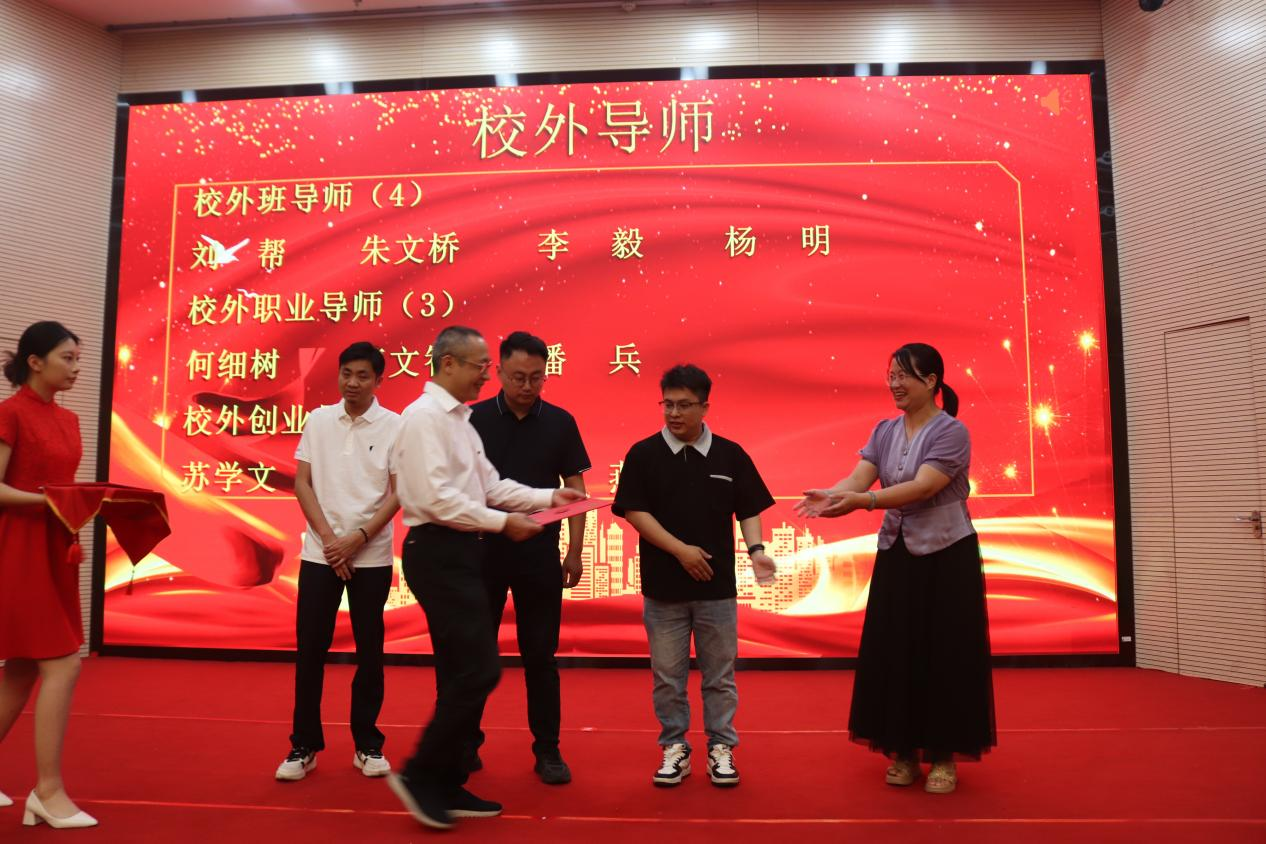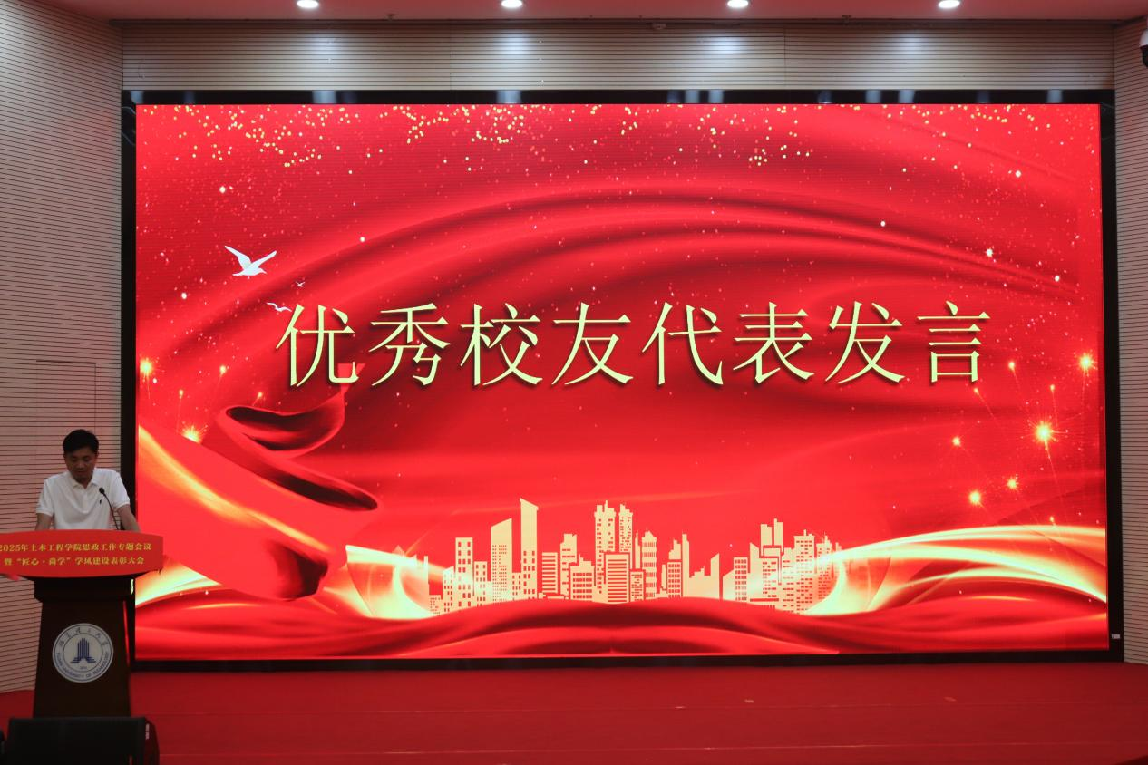 优秀学生代表陈绍卿、优秀班导师代表刘祥、校外导师杨明先后发言。陈绍卿分享了“国家奖学金+筑梦奖学金”的成长经历,刘祥以“亦师亦友”的育人理念引发共鸣,杨明则以行业实践经验激励学子扎根专业、勇攀高峰。