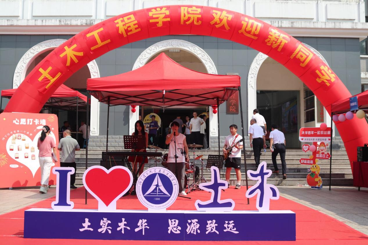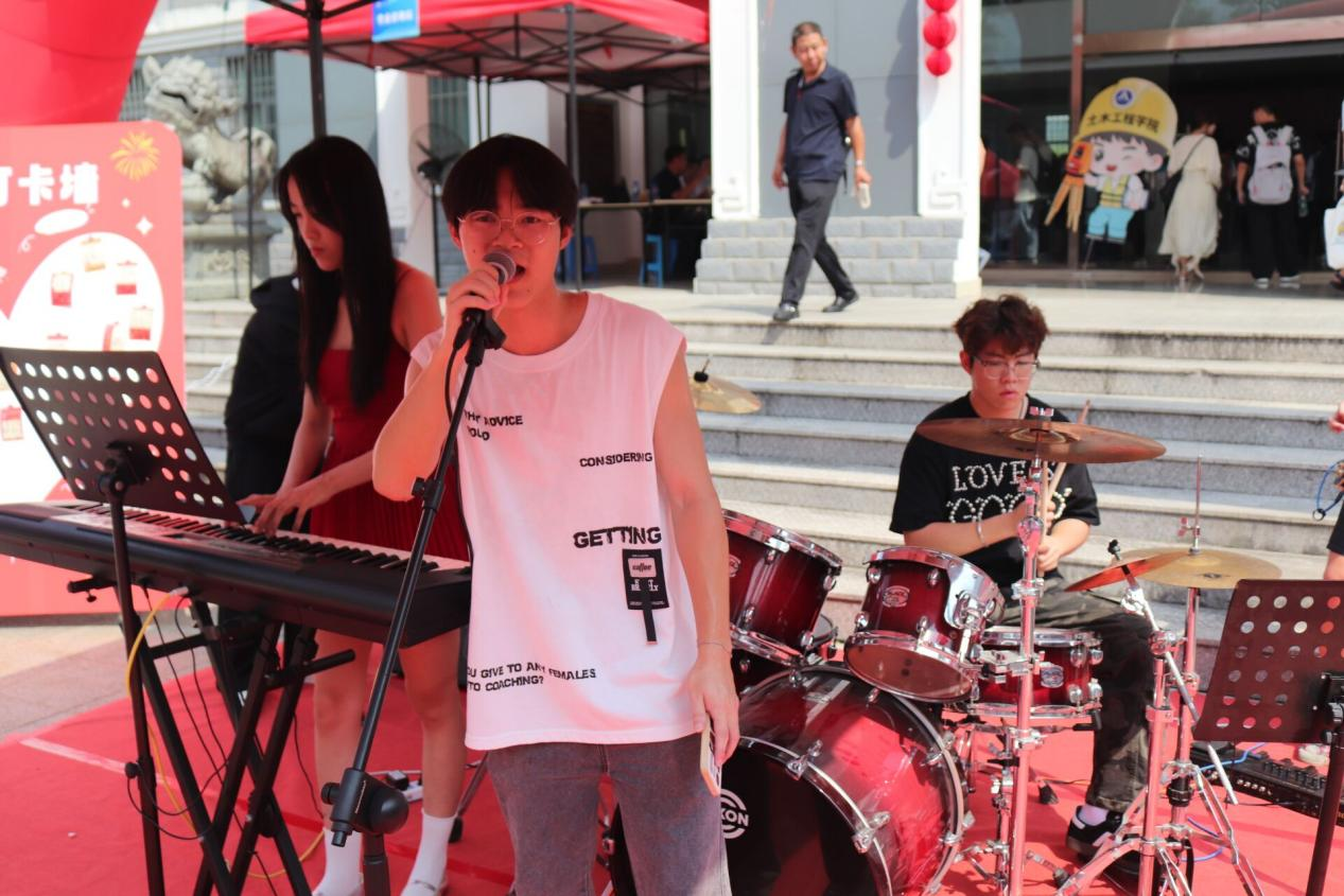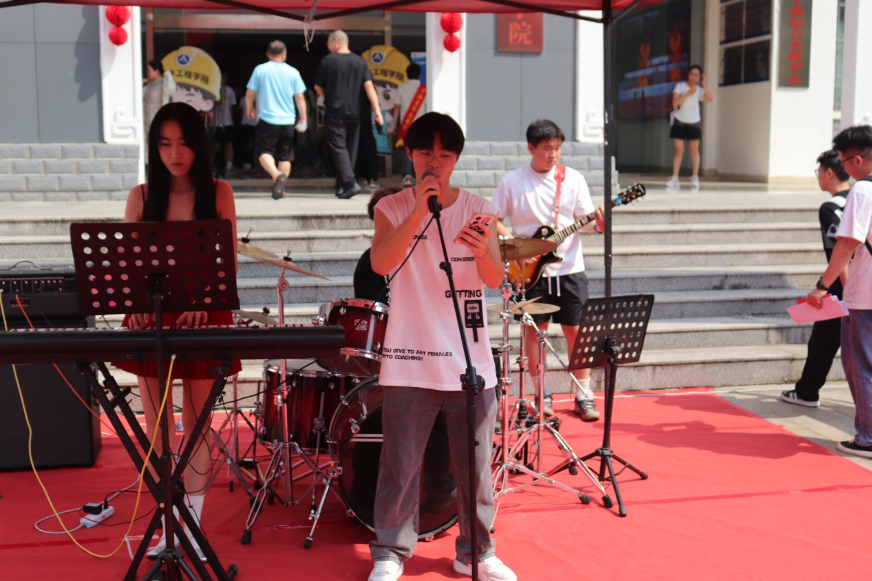 学院精心安排的乐队表演,成为报到日的一大亮点。在红色的迎新拱门下,乐队成员们尽情演奏,架子鼓的节奏激昂有力,吉他的旋律轻快动听,键盘的和声丰富饱满,主唱的歌声更是让整个校园充满青春活力。动感的音乐让刚到校的新生们沉浸在热烈欢快的氛围和来到大学校园的激动心情中。