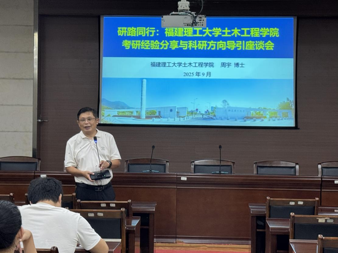 9月25日晚,土木工程学院召开“研路同行——考研经验分享与科研方向导引座谈会”。院长王刚教授、韧性结构与智能建造协同创新团队负责人郑莲琼教授、院长助理周宇博士、辅导员韩霖磊老师,以及2025级研究生陈凯哲、邓建椿同学应邀出席,与50余名2022级意向考研学子面对面交流。