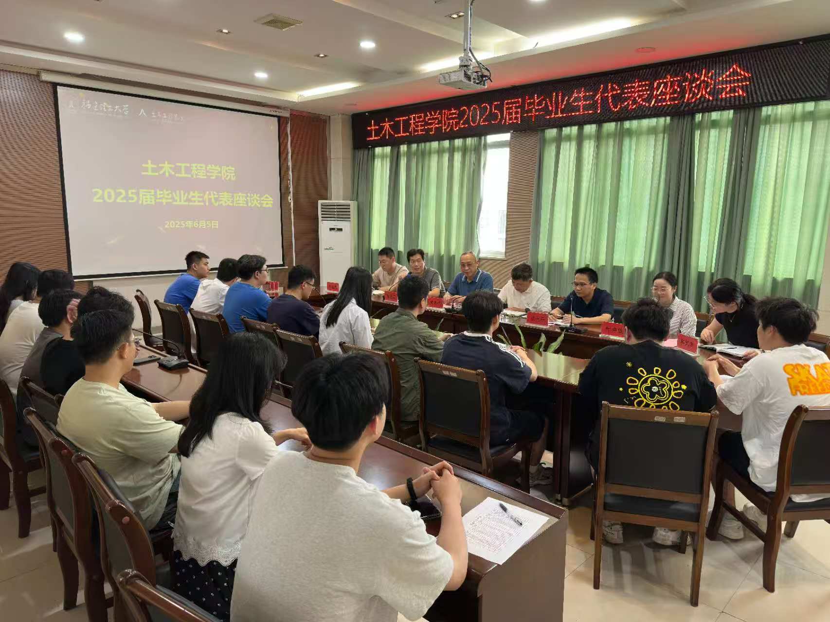 为搭建师生沟通桥梁,全方位倾听毕业生成长感悟与发展诉求,帮助学子们以更从容的姿态迈向人生新征程。6月5日下午,土木工程学院在思源楼六楼会议室召开2025届毕业生座谈会。学院党委书记黄志铭、院长王刚、副书记陈庆周、副院长庄金平、院长助理周宇、2025届毕业生辅导员以及25届研究生、本科生毕业生代表参加了此次座谈会,会议由陈庆周主持。