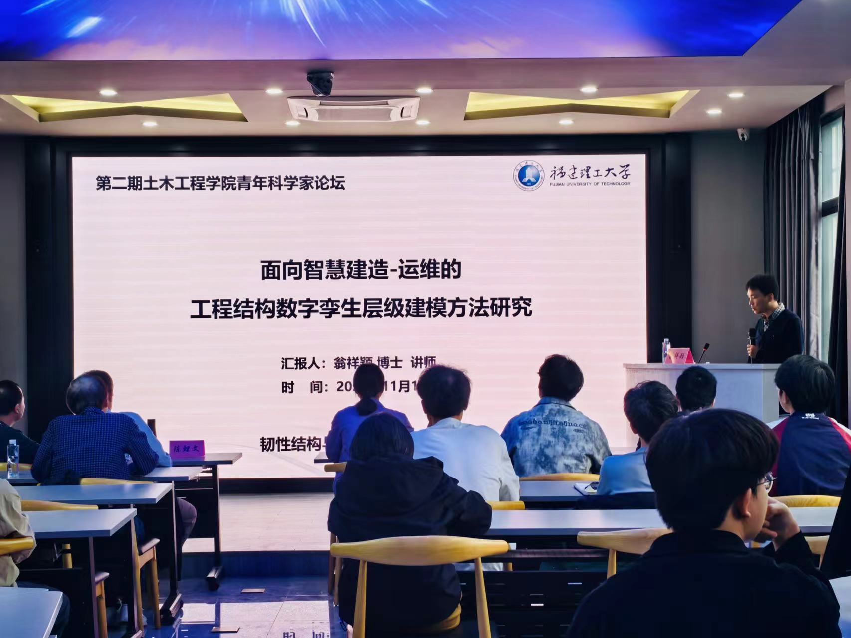 11月11日,我院第二期青年科学家论坛成功举办。本次论坛由韧性结构与智能建造协同创新团队组织,聚焦智能建造前沿技术,特别邀请了计算机与数学科学学院院长助理陈鲤文教授作报告,团队翁祥颖、刘如月老师分别以数字孪生和结构抗震韧性为主题,展示了智能建造领域的最新研究成果和下一阶段研究规划。本次论坛的成功组织,进一步促进了土木工程与计算机科学的跨学科交流与融合。