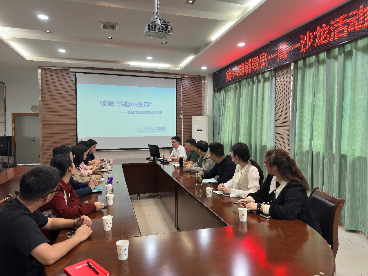 10月31日下午,由学生工作部指导、辅导员协会主办、土木工程学院学工办承办的学校第四十四期辅导员“一周一沙龙”活动在土木工程学院思源楼六楼小会议室顺利开展。本期活动以破局“兴趣VS生存”为主题,特邀我校优秀校友、宁德师范学院马克思主义学院专任教师吕培榕担任主讲嘉宾,各学院辅导员代表参与交流。