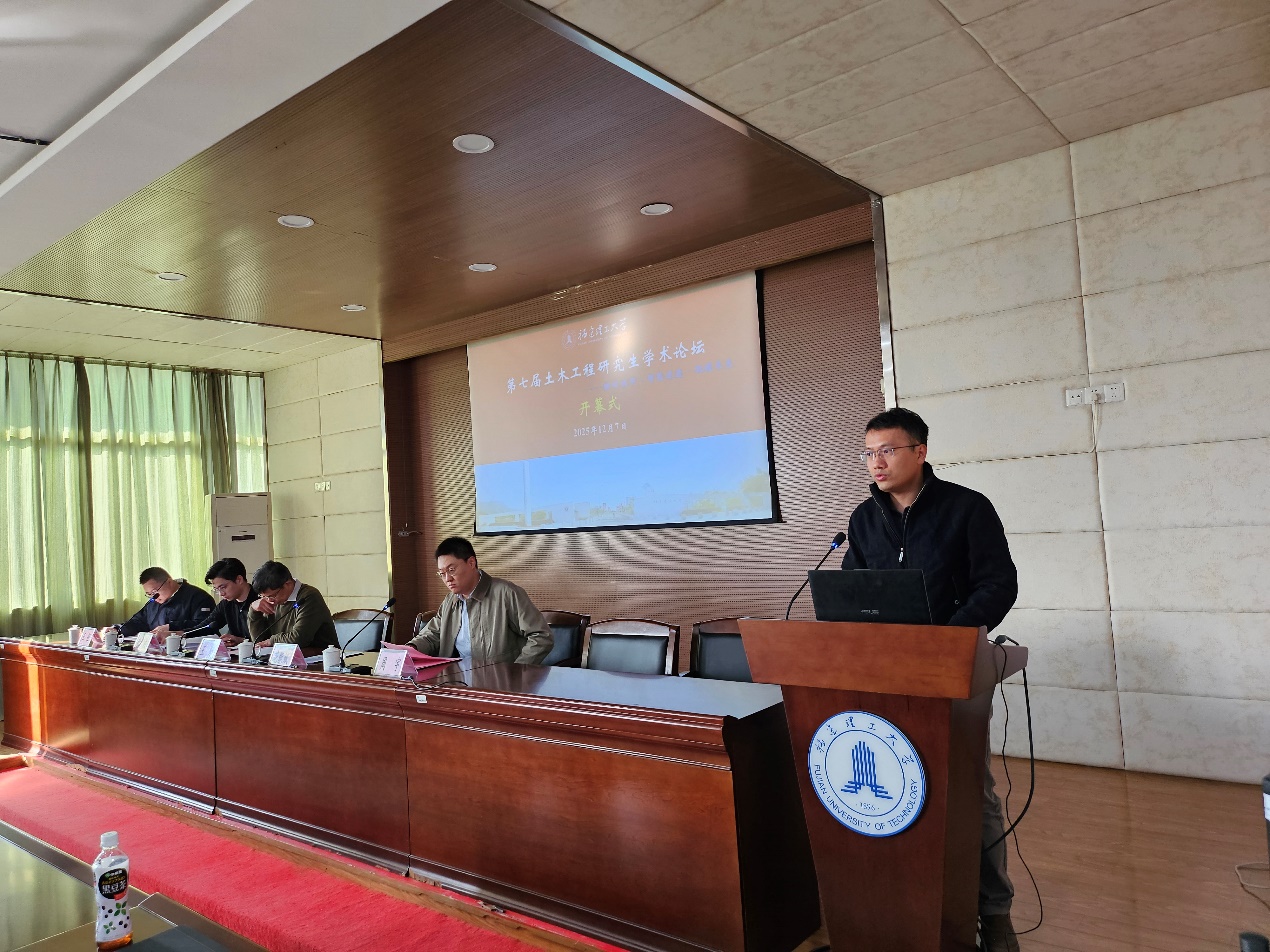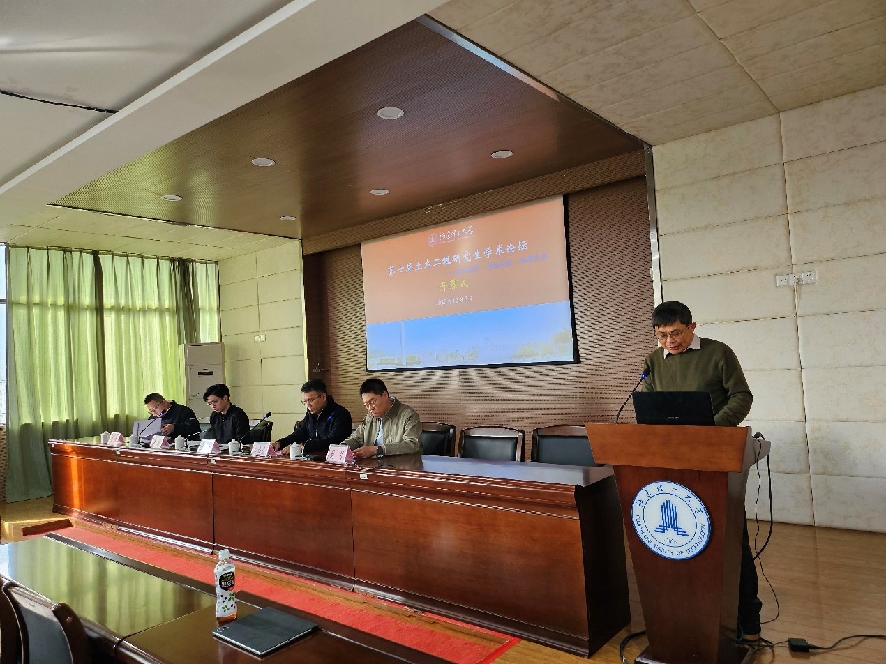 2025年12月7日,福建理工大学第七届土木工程研究生学术论坛顺利举办。本届论坛以“韧性城市·智能建造·低碳未来”为主题,特邀福建理工大学研究生处副处长、学科建设办公室副主任花能斌教授、土木工程学院院长王刚教授、校内外专家学者、各年级研究生共200余人参加此次论坛。论坛开幕式由土木工程学院院长助理周宇主持,花能斌教授、王刚教授分别为开幕式致辞。