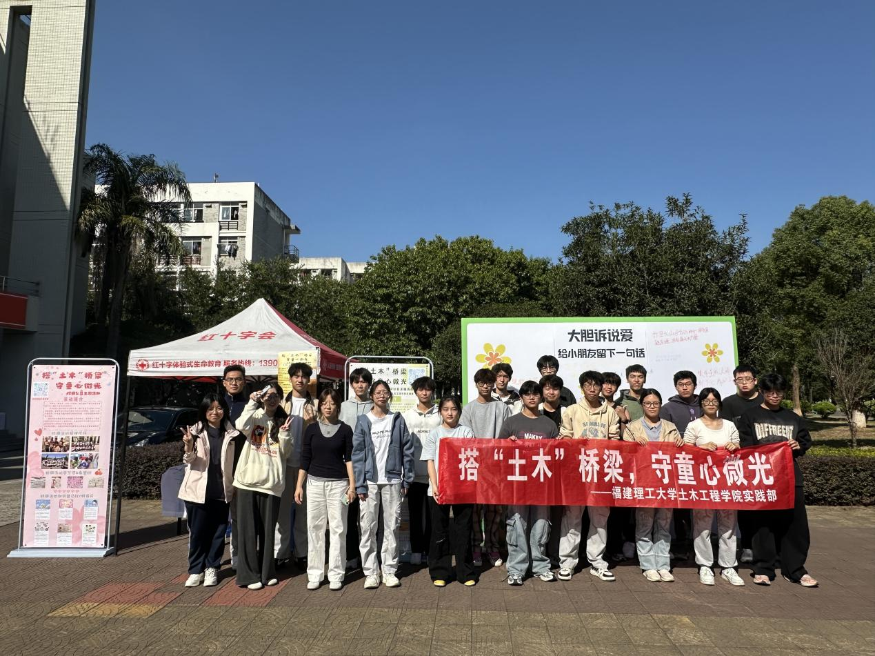 为了关爱和鼓励留守儿童,促进他们积极健康成长,11月24日至11月26日,共青团福建理工大学土木工程学院委员会青年志愿者工作部、院学生会实践部携手“希望树”项目组在北区文化广场共同举办《搭“土木”桥梁·守童心微光》公益主题活动。近500余名学子参与,为留守儿童点亮求学之路,让他们切实感受到社会的深切关爱;为孩子们营造更为优良的成长环境,使他们在知识的充分滋养下茁壮成长,能够坚定且勇敢地去追逐自己的梦想。