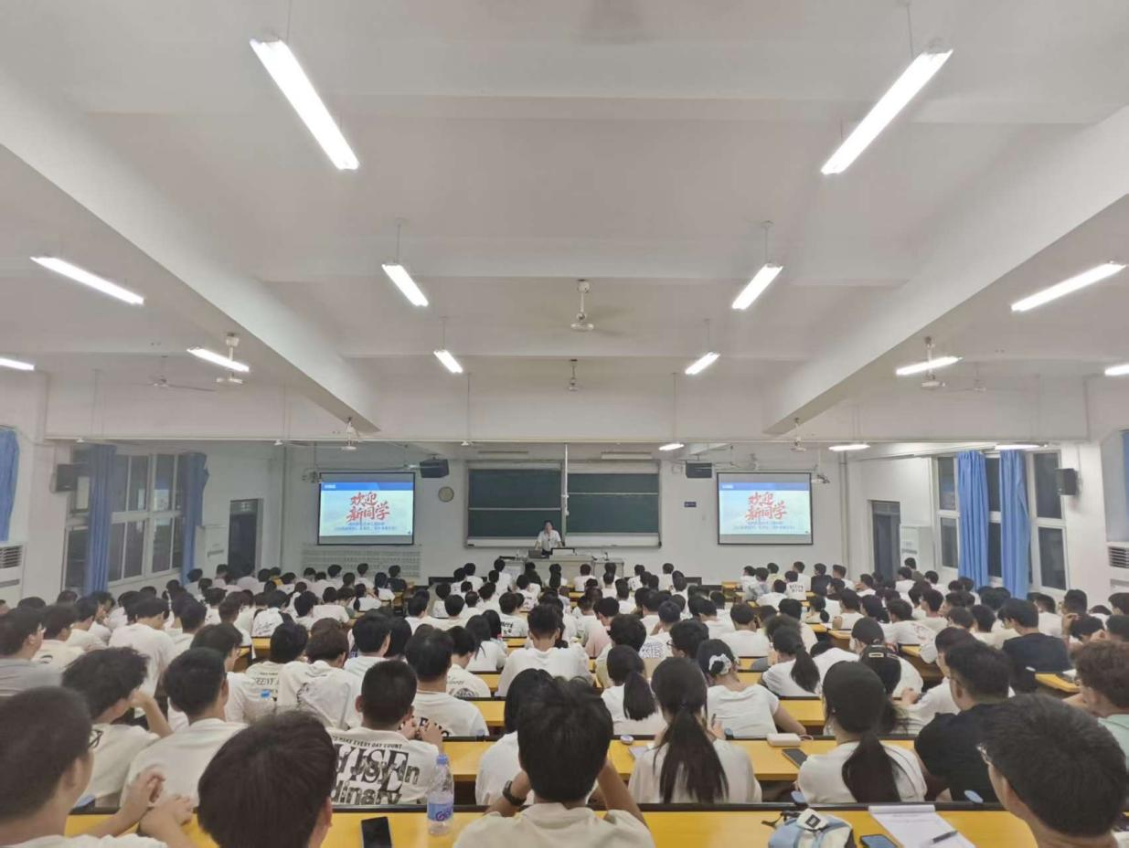 随后陈庆周从学院在学科建设、科研平台、实验室条件等方面取得的显著成就说起,列举了学院拥有的高水平教学科研团队,其中包括众多具有丰富工程实践经验和深厚学术造诣的教授、学者,强调了学院在应用型人才培养方面的特色与声誉,他们将为同学们的专业学习和成长成才提供强有力的支撑。讲座还分享了部分杰出校友的奋斗历程与辉煌成就,以鲜活的榜样力量激励新生们立志高远、奋发有为。