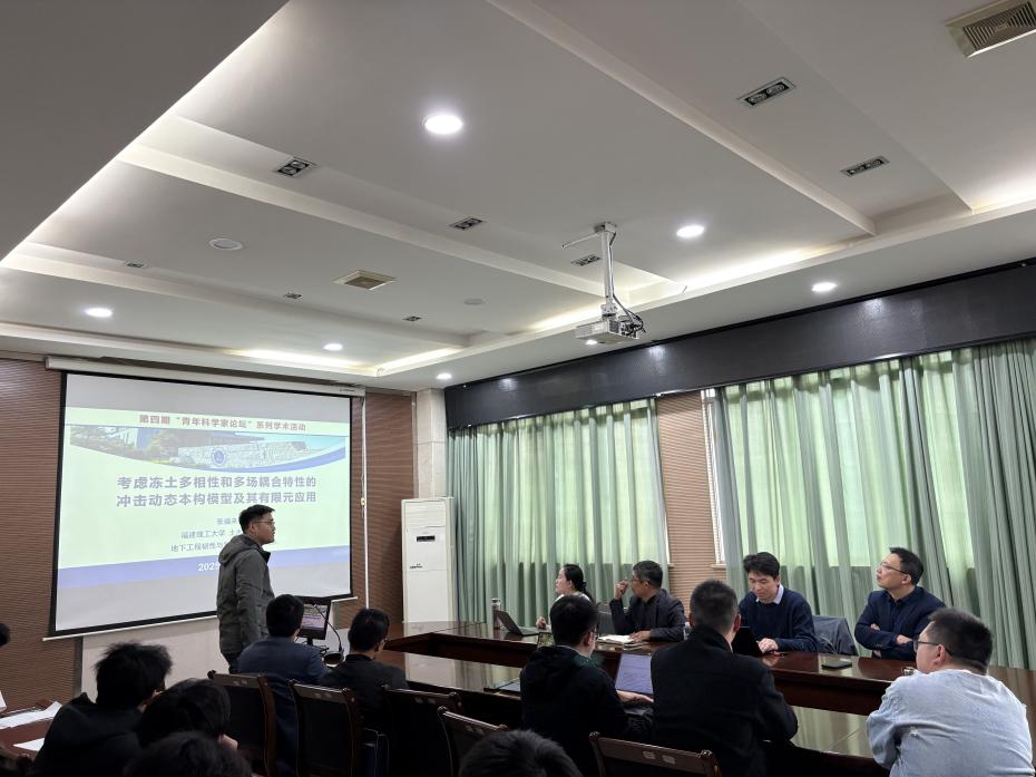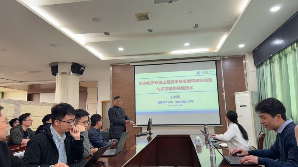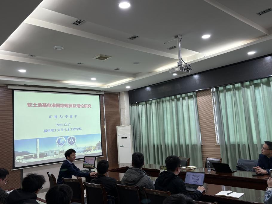 2025年12月18日,福建理工大学土木工程学院地下工程韧性与智能防灾创新团队成功举办了第四期“青年科学家论坛”。本期论坛于思源楼六楼小会议室举行,由詹金武副教授主持。活动特邀王刚、李建平、张福来三位教师作主旨学术报告。他们分别围绕工程岩体变形破坏机理、冻土多相多场耦合的动态冲击特性以及软土地基电渗固结技术等前沿方向,系统展示了最新研究进展与成果。本次论坛面向全校师生开放,为师生提供了宝贵的学术交流平台,进一步营造了活跃的科研氛围。
