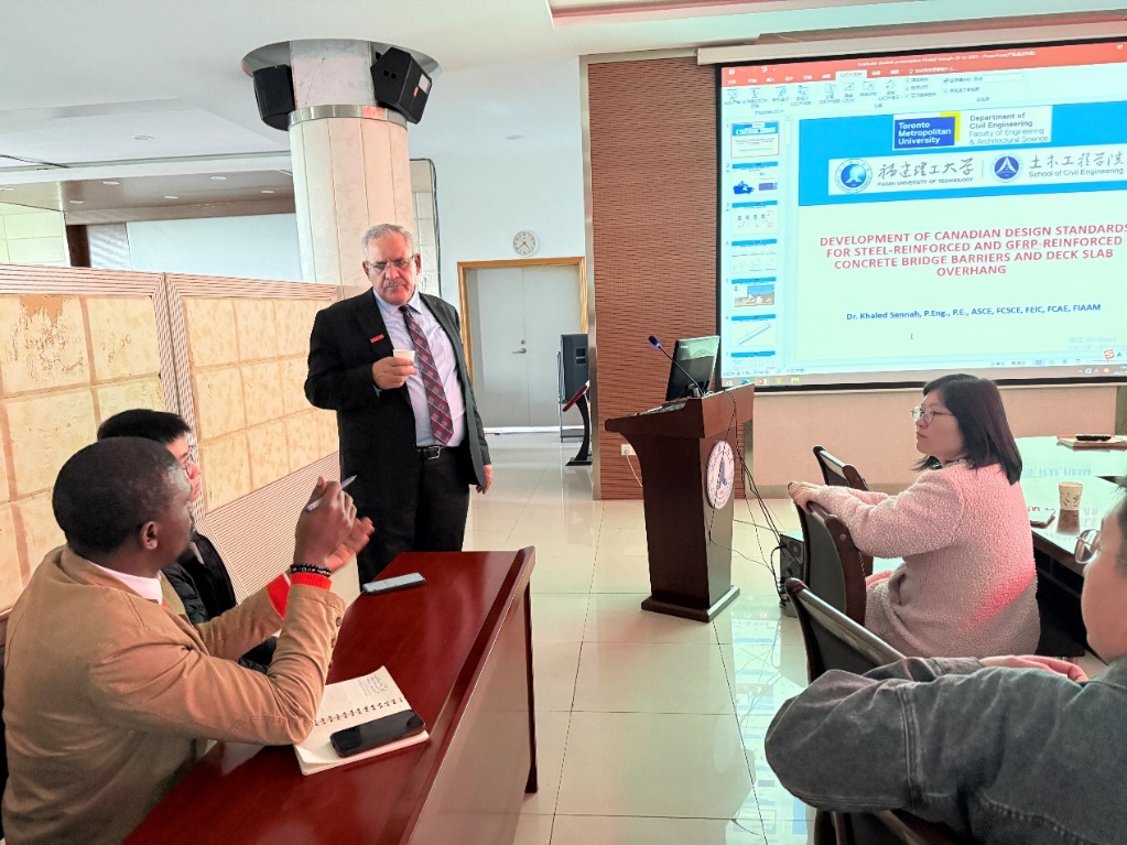 12月29日下午,我校特聘教授Khaled Sennah应陈宝春教授邀请,在福建理工大学土木工程学院思源楼六楼会议室,为师生带来题为《钢筋与GFRP混凝土桥梁护栏及桥面板——加拿大设计标准的发展》的学术报告。Sennah教授为加拿大工程院院士、多伦多都会大学全职教授。本次讲座由张伟教授主持,学院教师和研究生合计30余人参加。