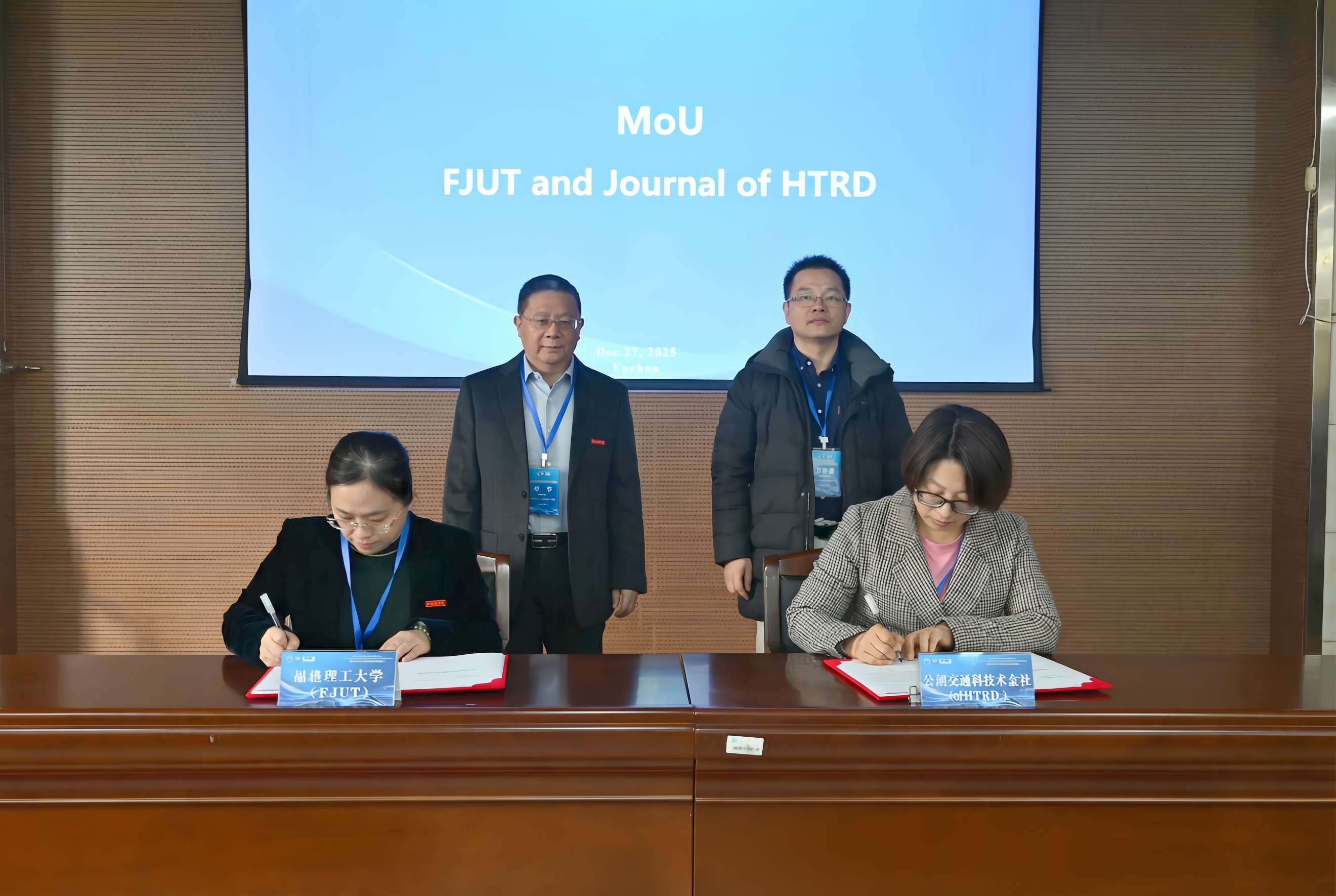 福建理工大学科研处负责人与公路交通科技杂志社负责人签订协议
