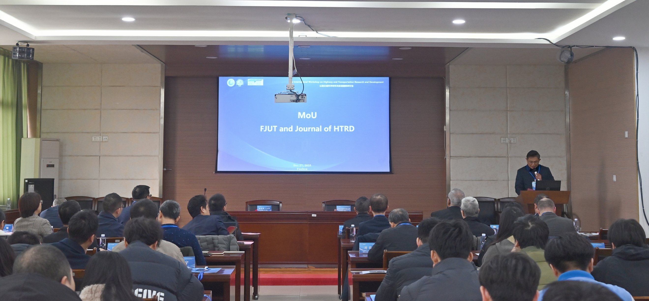 2025年12月27日,由我校特聘陈宝春倡导组织的公路交通科技研究与发展国际研讨会(International Workshop on Highway and Transportation Research and Development,HTRD)在福建理工大学土木工程学院思源楼六楼会议室举行。研讨会由土木工程学院王刚院长主持。