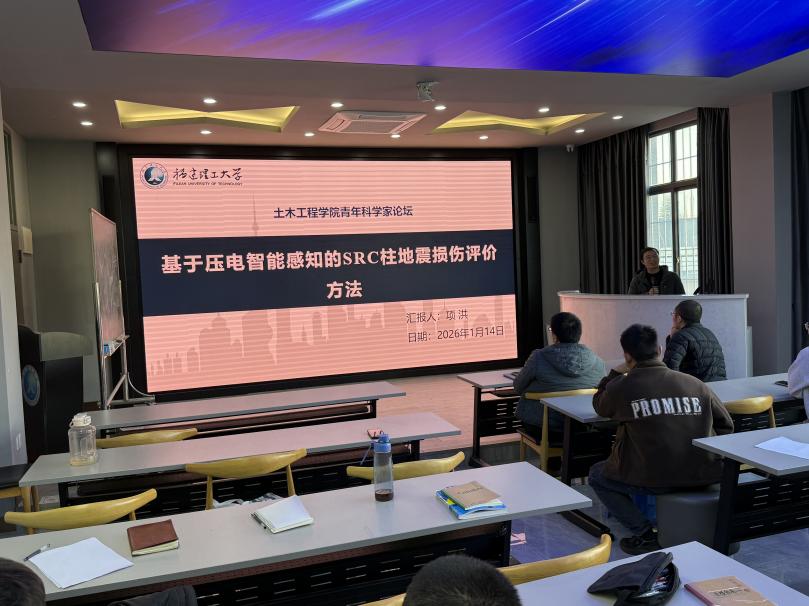 2026年1月14日,福建理工大学土木工程学院抗震分析与安全评估课题组主办的第六期“青年科学家论坛”在思源楼虚拟仿真中心教室顺利召开。本期论坛以“推动新型材料研究与工程结构深度融合”为主题,由张筱逸老师主持,吸引了学院众多师生积极参与。现场学术气氛浓厚,交流互动热烈。