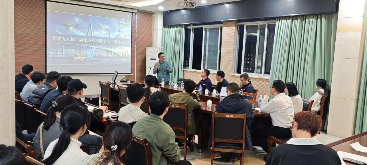 3月27日晚18:30,应我院特别邀请,长沙理工大学教师、湖南拓达结构监测技术有限公司创始人谢海波博士在学院六楼会议室为广大师生带来了一场题为《桥梁无人机自动巡检与数字孪生系统研发及应用》的精彩学术讲座。本次讲座由院长助理杨宇老师主持,60余名师生到场聆听与交流。