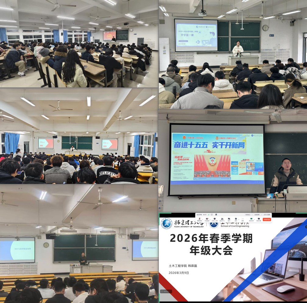 本次“开学第一课”年级大会内容充实、覆盖全面,不仅帮助同学们明确了新学期的方向与目标,也进一步强化了大家的思想认识、纪律观念和安全防范能力。土木工程学院将持续推进新学期各项教育管理工作,护航学生健康成长与全面发展。