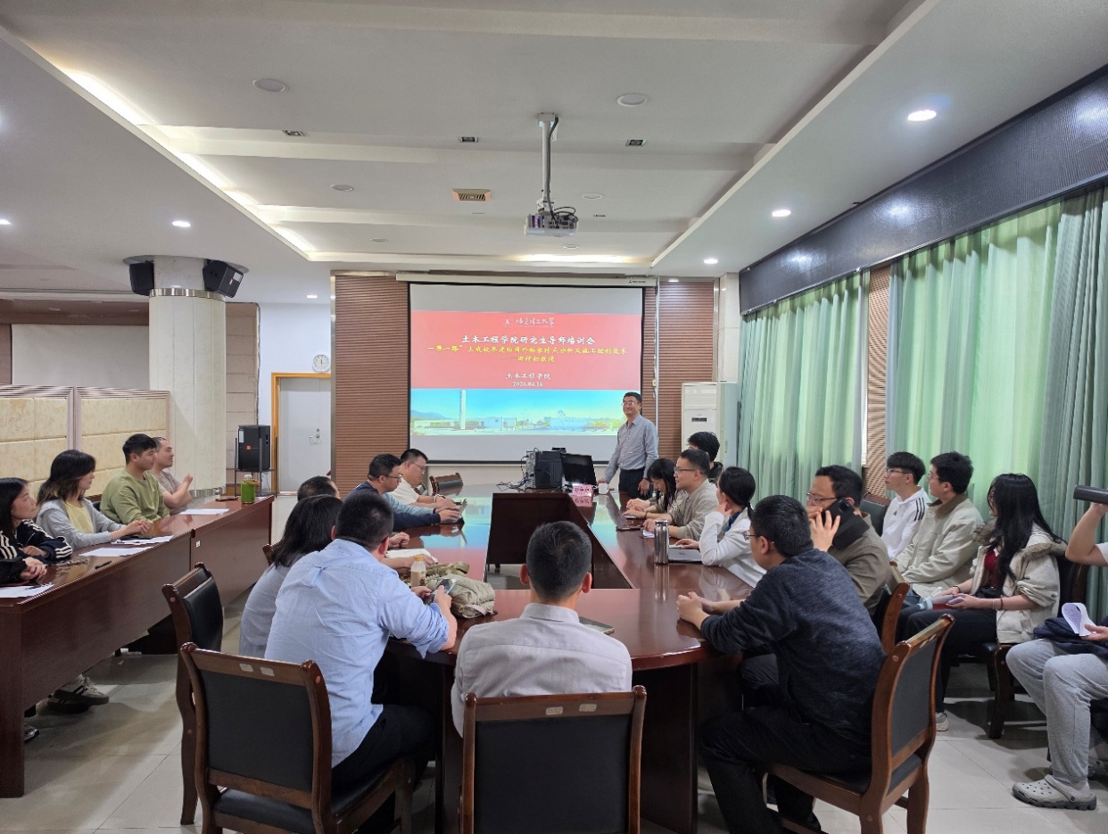 2026年4月16日下午,土木工程学院在思源楼六楼会议室举办了研究生导师培训会暨《“一带一路”上我校参建的国外桥梁特点分析及施工控制技术》学术报告。学院特邀我校特聘教授田仲初教授主讲,院长助理杨宇主持,60余名学院导师及研究生参会。